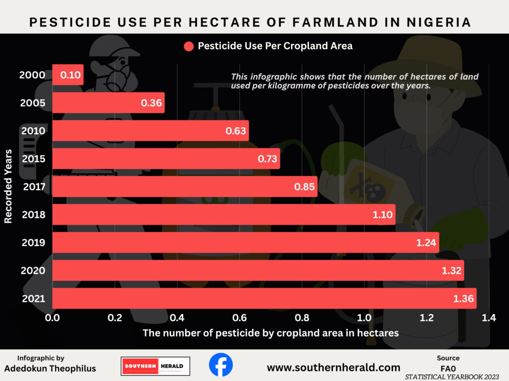Furthermore, FAO pointed out that Nigeria’s pesticide usage does not increase in isolation; the number of pesticides that are applied on each hectare of farmland also follows suit.