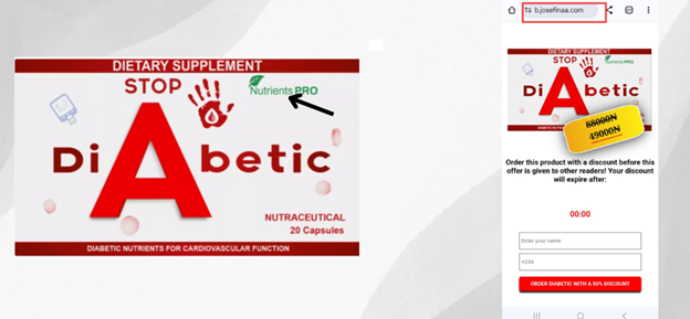 While all of the products on the Nutratainment website appear to have been primarily targeted at Asian countries, with the exception of GlucoPro and Diabetic, which advert and sale have been seen targeted at Africans online.