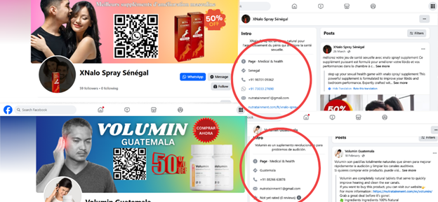 The email address, nutratainment1@gmail.com, was also found to be associated with another Facebook page, Sucrenorme-Cote d’Ivoire, which was last updated on March 3, 2025, and promotes Sucre Norme, which is said to be a potent ally in the fight against diabetes, and XNalo Spray, which is targeted at Senegal and is said to aid in sexual health. Two Indian-registered phone numbers are associated with both Facebook profiles.