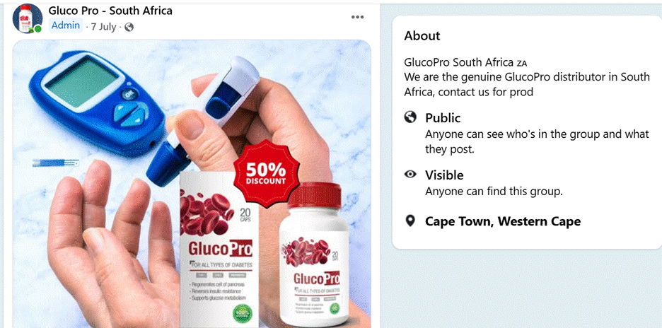 GlucoPro South Africa was created in 2021 and has more than 6,000 members at the time of this report. The group frequently publishes posts endorsing unproven health products and purported natural remedies and often promotes them as substitutes for traditional medical care. These posts encourage false hope and discourage evidence-based treatment, creating a dangerous environment for people seeking real healthcare solutions.