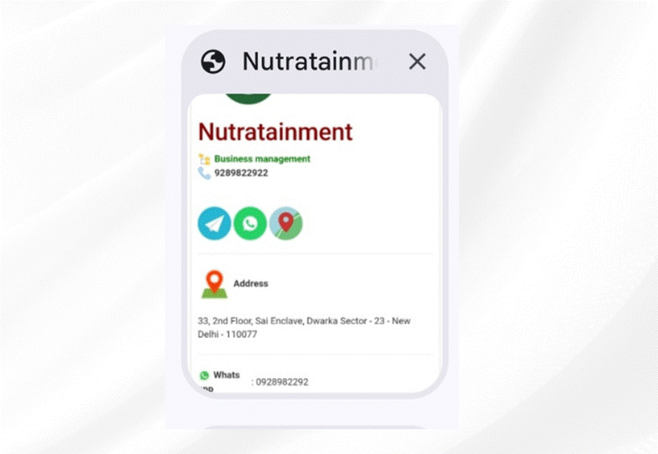 The email address was also discovered on Letfindout, an online directory of Indian businesses, that shows that Nutratainment is headquartered in New Delhi, India.