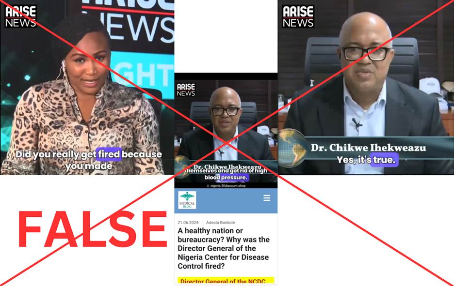 In another example, a page called Natural Media shared a video in June 2024 purporting to show Amaka Udeh, a former Arise TV programme host, interviewing Dr Chikwe Ihekweazu, the former director-general of the NCDC. The video took viewers to a fake website that promoted Cardizoom and made up the story that he was fired for finding a way to treat hypertension. Actually, Dr Ihekweazu quit his job willingly in 2021 to work for the World Health Organisation. Unsynchronised lip movements and facial distortion were among the obvious indications of AI manipulation in the video.